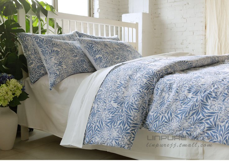 绿意盎然蓝色床品四件套